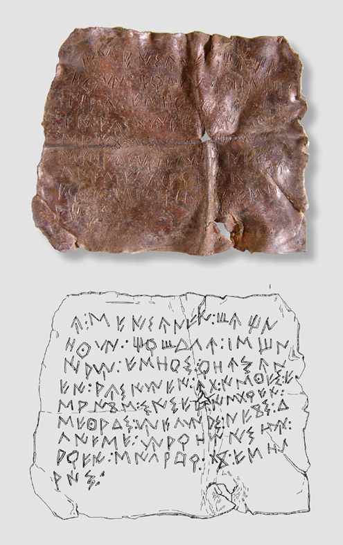 Debe subrayarse que de los dos centenares largos de inscripciones celtibéricas con más de tres signos casi la mitad son epígrafes sobre bronce: unas 60 leyendas monetales, medio centenar de téseras de hospitalidad y una quincena de láminas y placas (Simón 2013; Jordán 2019). Todos ellos son presumiblemente de carácter oficial, es decir emanados de las autoridades de las ciudades, unos de carácter público, esto es destinados a ser leídos por un amplio número de personas y otros como las téseras accesibles a una audiencia mucho más restringida, es decir de carácter privado.