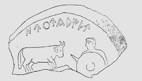 La mayor concentración de inscripciones funerarias procede de la ciudad de Clunia (Peñalba de Castro, Burgos), donde se han localizado cinco estelas funerarias decoradas con diferentes motivos iconográficos y de fecha más bien tardía, pues se datan en el siglo I a. E. sin descartar que alguna pudiera adentrarse en los inicios del I d. E. [BU.06.01-05] (Figura 8). Alguna de ellas presenta escritura redundante, como la que exhibe el nombre personal, kaabaarinos [BU.06.01], que suele entenderse como una interferencia del sistema alfabético por la que se escribiría innecesariamente tras el signo silábico oclusivo la vocal correspondiente. Tanto esta estela, decorada con un jinete lancero, como las otras exhiben motivos guerreros como un hombre armado frente a un toro [BU.06.02] o restos de otros, uno empuñando una lanza [BU.06.03] y otro con grebas [BU.06.05]. Esta iconografía ilustra obviamente el contexto guerrero en el que se ubican las personas, pertenecientes probablemente a las elites locales, representadas en estos simples monumentos funerarios (Simón 2017), en los que, significativamente, la escritura, por su emplazamiento y traza, desempeña un papel secundario respecto de las imágenes.