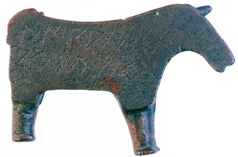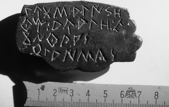 Sin embargo, la primacía temporal parece que debe asignarse ahora a un rótulo de dos palabras esgrafiado sobre una ‘phalera’ de plata, esto es un disco ornamentado propio del atuendo militar, conocido entre diferentes pueblos mediterráneos incluidos griegos, iberos y romanos. La fálera fue descubierta en un ocultamiento de objetos de metal precioso —plata sobre todo— en la localidad de Armuña de Tajuña (Guadalajara) y debe datarse muy poco después de 208 a. E., fecha a la que corresponde la más reciente de las monedas romanas halladas en el ocultamiento (Ripollés, Cores y Gozalbes 2009). Ello sitúa el tesorillo en el contexto del final de la segunda guerra púnica, durante la cual cartagineses y romanos se disputaron con victoria de los segundos la hegemonía en Hispania y en el Mediterráneo occidental y abre la posibilidad de identificar al propietario de la fálera con un guerrero de las elites celtibéricas involucrado en los conflictos romano-cartagineses peninsulares, quizá como mercenario, en una tradición bien documentada entre los celtíberos en esta época.
